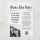Anuncie sua história de amor com uma reviravolta moderna no estilo do eterno. Esta salva-vidas inspirada no jornal apresenta uma foto personalizada e um design preto-e-branco elegante, em conjunto com um código de QR digitalizável para fácil acesso aos detalhes do seu casamento. Uma mistura de charme clássico e elegância minimalista, é a maneira perfeita de compartilhar suas notícias empolgantes de uma forma amigável e inesquecível.