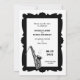 Certifique-se de que seus amigos e entes queridos estejam lá para o seu casamento com esses cartões Salve a Data em estilo retro de Jazz em preto e branco. Os cartões são no estilo de um pôster retrô e apresentam um saxofone com notas musicais, dois copos brindando e a frase caprichosa "dança come bebe celebra / vive ama ri canta" para adicionar um toque decorativo.