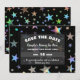 Estrelas falsas holográficas coloridas sobressaem contra o fundo preto. Texto chique e simples é fácil de personalizar. Disponível em muitas cores cintilantes.