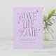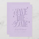Elegante e caprichoso, salve o cartão de data com fonte boho que diz "salve a data" com estrelas sobre fundo de lavanda. Você pode adicionar uma foto atrás.