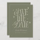 Elegante e caprichoso, salve o cartão de data com fonte boho que diz "salve a data" com estrelas em um plano de fundo verde sábio. Você pode adicionar uma foto atrás.