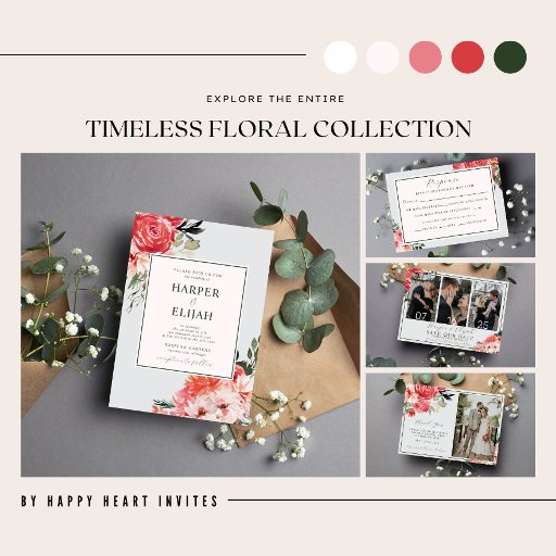 Reserve A Data Eterno Floral Blush Red Greenery Casamento Clássic