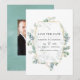 Floresta selvagem eucalipto herbário casamento salvar a data com moldura geométrica dourada projetada para ser personalizada rápida e facilmente para os detalhes do seu evento.