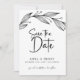 Reserve A Data Eucalipto preto e branco moderno deixa casamento