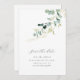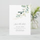 Os cartões salve a data russos apresentam um verde botânico de cor aquática e um guião e letra chic modernos, elegante e simples, excelente para casamento rústico moderno, casamento de jardim botânico e casamento de boho country. Veja todas as peças correspondentes na coleção.