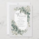 Este modelo de save the date de casamento elegante combina lindamente uma pintura sonhadora em aquarela de uma moldura botânica, adornada com delicada folhagem de eucalipto, com tipografia moderna e caligrafia. O efeito suave de aquarela no estilo de lavagem do design cria uma sensação romântica e moderna, tornando-o a escolha perfeita para casais que apreciam uma estética natural e botânica. Com espaço para exibir uma foto querida, este modelo oferece um toque pessoal para anunciar seu dia especial de forma elegante e memorável.