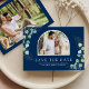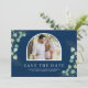 Amaze your guests with this elegant wedding save the date featuring beautiful eucalyptus leaves and modern typography. Simply add your event details on this easy-to-use template and adorn this card with your favorite photos to make it a one-of-a-kind save the date card.