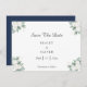 Este casamento branco e moderno com algodão eucalipto, salvo a data, é perfeito para o seu casamento moderno. Este design apresenta o eucalipto verde com flancos brancos de algodão em um fundo branco e marinho e um roteiro de caligrafia preta em um layout clássico moderno e tradicional. Por favor, sinta-se à vontade para nos contactar com quaisquer perguntas sobre esta design.