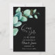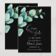 Informe seus amigos e entes queridos de sua data de casamento futura com este elegante e negro salvando a data com folhas verdes de eucalipto de aquarela.