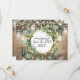 Uma ilustração maravilhosa e vibrante que apresenta uma coroa circular de folhas de eucalipto que repousa sobre uma vibrante castanha escura e um fundo azul esparso que tem luzes cintilantes brilhantes e jarras de pedras falsas que parecem brilhar e brilhar. Há modelos na frente e atrás para você personalizar. Estes são ideais para a queda do país rústico/anúncios de outono, verão, primavera ou inverno "salve a data". Essas cartas chatas luxuosas e elegantes vão deliciar seus convidados.