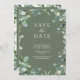 Incomodem seus convidados com esta elegante, exceto a data com lindas folhas de eucalipto e tipografia moderna com o Código QR para o website de casamento. Basta adicionar os detalhes do seu evento neste modelo fácil de usar e enfeitar este cartão com as suas fotos favoritas para torná-lo um cartão de data única.