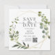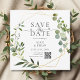 Announce your wedding date with effortless botanical elegance! This Save the Date Card features a sophisticated design where soft eucalyptus greenery drapes gracefully over a chic geometric frame. All your important details are presented in a timeless, elegant serif font, setting a refined tone. The heading, 'Save The Date,' is a beautiful focal point, combining the strong serif font with the romantic touch of the word 'The' written in a delicate script adorned with tiny hearts. It’s the perfect way to send a stylish Unique Save the Date preview of your modern, elegant celebration.