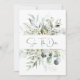 Declaração russa com eucalipto e pequenas flores brancas e bagas brancas. Personalizar com suas próprias informações