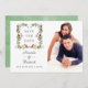 Pinho rústico nevado e floral de abeto aquarela natal salvar a data do casamento com um fundo de lavagem de aquarela verde-sage.
