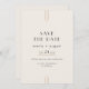 Este requintado cartão de salvar a data do casamento art déco da Coleção Everly apresenta tipografia preta minimalista e acentos de linha dourada em um fundo de creme suave. É perfeito para um visual elegante e atemporal.