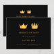 Exquisite Golden Effect Queen & King Royal Crowns Save the Date Cards on Black Bacground.