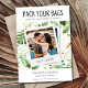 Prepare-se para uma celebração exótica de amor com a nossa "Pacote suas Bolsas" Foto Jamaica Wedding the Date card, um deleite inspirado na tropical que irá levar seus convidados para um casamento de destino sonhador na Jamaica! Com a frase divertida e convidativa "Faça suas Bolsas", este cartão Salvar Data define o palco de uma aventura inesquecível no paraíso. Seus convidados ficarão encantados com a promessa de uma celebração alegre que combina romance, relaxamento e esplendor tropical.