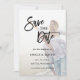 Casamento moderno e elegante com 2 fotos, salve o cartão de data com na moda calliografia.