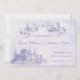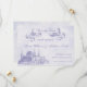 Casamento de conto de fadas salve os cartões de data com um castelo de livro de histórias e banner em um pergaminho de vintage. Perfeito para o seu casamento da princesa de conto de fadas! Linda imagem roxa e texto em um fundo lilático antigo. Também disponível em outros esquemas de cores. Entre em contato com pmcustomweddings@hotmail.com para obter cores personalizadas.