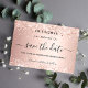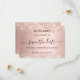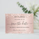 A Save the Date for a Quinceañera, 15 festa de aniversário. Um fundo rosa de ouro decorado com falso brilho, faíscas. Personalize e adicione uma data e nome/idade. O texto: Salvar a Data é gravado com um script de estilo com letra de tendência grande com alternâncias.