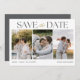 Anuncie seu dia especial com estilo com o nosso "Save the Date" de casamento em faixa de fotos elegante! Este design atemporal apresenta um layout de faixa de fotos elegante, permitindo que você mostre vários momentos da sua história de amor. Com suas fontes sofisticadas e estética moderna e limpa, este "Save the Date" adiciona um toque de elegância, mantendo-o pessoal.