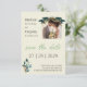 Fall Blue e Dourado Floral Salve a foto de data. Este cartão de olhar moderno vai chamar a atenção de Belo design contemporâneo: adicione sua foto