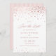 Adicione um toque de luxo e brilho ao seu anúncio de casamento com este deslumbrante Cartão de Save the Date com Confetes em Folha de Ouro Falso. Apresentando um lindo design de confetes com elegantes acentos de folha de ouro rosa falso. A escrita delicada e fluida complementa perfeitamente os detalhes cintilantes, criando um anúncio de casamento atemporal.