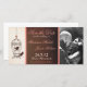 Estes salvam a data em que cartões com fotos de casamento apresentam uma fantástica gaiola de pássaros com espirais e um coração cor-de-rosa, e dois pássaros bonitos, em marrom chocolate, pendurados contra um marfim, em papel texturizado com letra esmaecida. Uma fita rosa pálida e brilhante separa uma barra lateral marrom de chocolate, que contém a formulação do convite de casamento em marfim e rosa. O texto do convite, em scripts alternados e fontes de serif clássicas e fotos de noivado de casal são completamente personalizáveis.