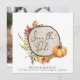 Fatia Rústica de Folha de Foto Salve a Data - Envie seu anúncio alegre para sua família e amigos Com nossa Fatia Rústica de Foto Fall Madeira Boho Salve o Anúncio de Data. Salve a data com tipografia moderna, escrita em uma fatia rústica de madeira caída enfeitada com folhas de outono, verde e abóbora. A parte de trás da data de salvamento apresenta sua foto muito especial. Salvar a Data é parte de uma coleção. Desenhado pela Designer de Casamento Beverly Arena-Bainbridge Magnolia & Thistle