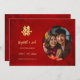 Esta foto de casamento chinesa salvou o cartão de data apresenta um símbolo de dupla felicidade artística ouro num fundo floral vermelho brilhante. Salve o texto da data em um script elegante. Produtos de casamento chineses correspondentes disponíveis.