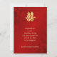Um símbolo de dupla felicidade de ouro artístico num fundo floral vermelho brilhante. Salve o texto da data em um script manuscrito elegante. Produtos de casamento chineses correspondentes disponíveis.