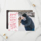 Este cartão com fotos de feriado moderno e chic dobra como uma salva do cartão de anúncio de data para o casal recém-engajado. A frente mostra suas fotos acentuadas por flocos de neve desenhados à mão e tipografia escrita à mão que diz "Beijos Felizes e Feriados Quentes de Logo Serem Sr. e Sra." em vermelho sobre um fundo branco. O inverso dobra ao salvar o anúncio de data com uma foto de cheio e seus detalhes. Visite a coleção para ver mais itens com este trabalho de arte.