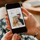 Elegante salve o anúncio de data para sua eleição postada ou pequena recepção de casamento ou festa de celebração. A frente apresenta sua foto de casamento e "Salve a data para nossa festa feliz" em uma mistura de simples tipografia e um roteiro moderno chic. Em sua foto, adicione seus primeiros nomes e a data do casamento. Ao contrário, personalize a mensagem de salvamento da data em mais detalhes e adicione seus nomes em um script semelhante a assinatura.