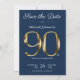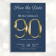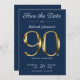 Festa de aniversário azul 90 Marinho Dourada clássica Salve a data. Aniversário simples, mas clássico, salve o cartão de data com o marco do ano de nascimento com efeito de texto em ouro sólido! Este é um modelo editável e poderia ser usado tanto para homens quanto para mulheres. Contacte-me se tiver alguma pergunta, farei o meu melhor para ajudar!