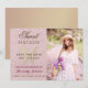 Delicado, sofisticado, elegante, borboleta em ouro rosa combinada com brilho, fundo rosa corado cintilante. Convite de Save The Date para festa de aniversário de 16 anos caprichoso, único, adorável com foto personalizada da garota. Escolha perfeita para aniversários de primavera!