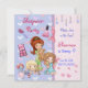 Padrão bonito festivo de corações em azul claro/lavanda. Há toques giros doces com arcos cor-de-rosa impressos e aparas de rendas. Três garotinhas são apresentadas vestindo pijama e prontas para festa. Personalize o texto na frente e atrás deste adorável convite de aniversário adorável. Nome, Aniversário e toda informação está pronta para ser mudada por você.