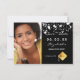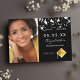 Uma foto: Save the date card for a festa de formatura 2025. Na frente: adicione sua própria foto vertical do formando. Uma cor clássica de fundo preto, decorada com estrelas brancas. Personalize e adicione um nome e data. Cartas brancas. O nome e o texto: Salvar a Data são escritos com um script de estilo moderno com letra manual.