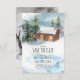 Uma cena de inverno nevado em aquarela com uma cabana logarítmica no bosque, estes cartões postais de Convite de festas Salve a Data de Natal são uma maneira segura de convidar seus convidados para manter sua data de festa disponível! Copyright O Compro Feriado, todos os direitos reservados.