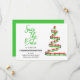 Você pode fazer o anúncio da festa e lembrar os convidados para salvar a data tudo em um design. Isso apresenta uma árvore de Natal contemporânea vermelha e verde à direita com detalhes à esquerda.