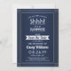 Você pode guardar um segredo? Convide colegas, colegas de trabalho, família e amigos para uma elegante e excitante celebração surpresa de aposentadoria com marinho azul e branco personalizados para salvar os convites de festas de data. Toda a redação desta modelo é simples de personalizar, incluindo a mensagem que diz "Shhh! É uma SURPRESA." O design apresenta uma fronteira striped moderna sobre um fundo ombre azul-marinho, tipografia vintage deco clássica e caligrafia com script na moda. A design neutra do ponto de vista do gênero também é adequada para um homem ou para uma mulher. Parabéns e feliz aposentadoria!
