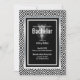 Festa de solteiro preto e prateado salva os convites personalizados de data. Convites de despedida de solteiro de impressão branco e preto elegante. Veja o resto da coleção para ver uma bela decoração.
