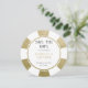 Deixe seus amigos e familiares saberem a data do seu casamento. Este divertido cartão de 'salve a data' no design de uma ficha de pôquer será um grande sucesso com seus amigos e familiares. Adicione seus detalhes para um casamento de destino em Las Vegas ou em outro local com estilo de cassino. Em dourado falso e branco.