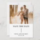 Casamento contemporâneo e moderno salve o cartão de data apresentando um design simples e mínimo com "Salvar a data" junto com seus nomes e data de casamento em negrito com sua foto favorita. O verso tem uma segunda imagem, seu monograma inicial e sua mensagem personalizada. Este casamento tipográfico preto e branco minimalista pode salvar o cartão de data pode ser personalizado para qualquer cor que você escolher na ferramenta de edição de design.