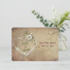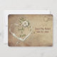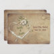 Coração de fita branca com rosa e coração de ouro anéis em design de cartão postal vintado