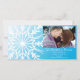 Faça um tom festivo para as núpcias de dezembro, Janeiro ou fevereiro com o elegante floco de neve branco no Casamento no inverno azul Teal Salve o Cartão com fotos de Data. Personalize-o com os seus nomes pessoais, data e imagem da cerimônia de casamento. Este elegante casamento de inverno personalizado mantém o cartões de fotos de data com um intrincado design branco de floco de neve em um fundo brilhante de gradiente azul aqua.