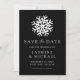 Anuncie seu casamento no inverno com estilo com nosso Simples Floco de Neve Preto e Branco Salve a Data. Apresentando um floco de neve branco e ousado e "Salve a Data" em uma elegante serifa e letras caligráficas sobre fundo preto, esta design capta a beleza do inverno. Personalize com seus nomes, data do casamento e local abaixo. Perfeito para o inverno, feriado e casamentos de Natal, esta salva a data dá o tom para uma celebração mágica.