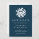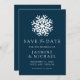 Anuncie o seu casamento de inverno com estilo com o nosso Save the Date Floco de Neve Simples Azul Marinho. Com um floco de neve branco ousado e "Save the Date" em letras serifadas elegantes e caligrafia sobre um fundo azul-marinho, este design captura a beleza do inverno. Personalize com seus nomes, data do casamento e local abaixo. Perfeito para casamentos de inverno, feriados e Natal, este save the date define o tom para uma celebração mágica.