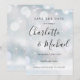 Com nomes de estilo de assinatura, este cartão de salva-data elegante pode ser personalizado com as informações da sua data especial em letras cinza chique em um fundo de geada de inverno. Projetado por Thisisnotme©