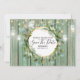 Uma ilustração maravilhosa e vibrante que apresenta uma coroa circular de folhas de eucalipto assente num fundo bonito de grãos de madeira azul claro que tem luzes cintilantes brilhantes e frascos de mason sobre ela colocados contra um fundo de madeira verde-macia. Há modelos na frente e atrás para você personalizar. Estes são ideais para a queda do país rústico/anúncios de outono, verão, primavera ou inverno "salve a data". Essas cartas chatas luxuosas e elegantes vão deliciar seus convidados.