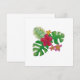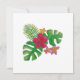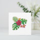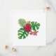 Um lápis de aquarela desenhando uma flor rosa tropical com folhas verdes.